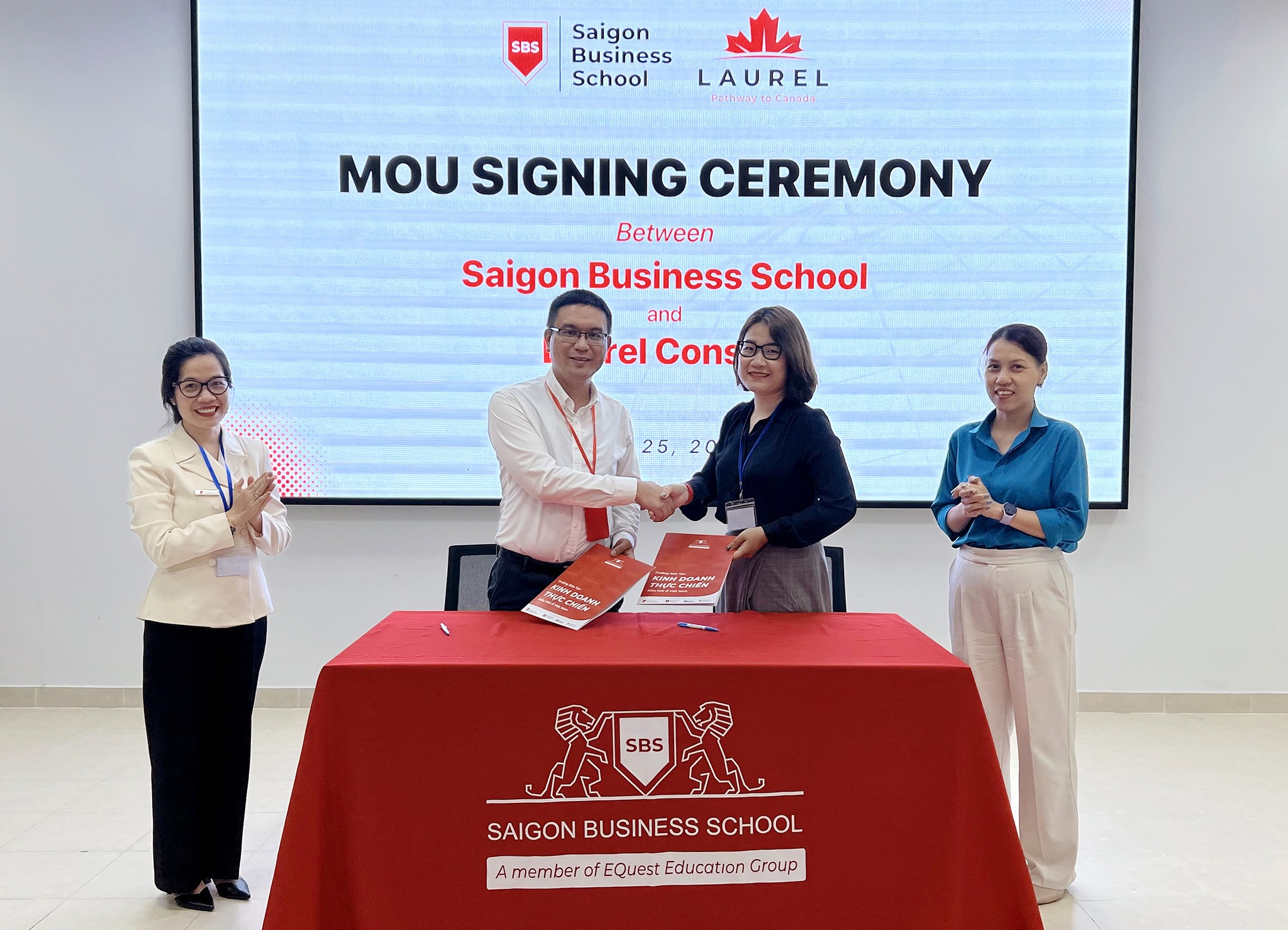Chiều 25.5, tại cơ sở đào tạo của Trường Kinh doanh Sài Gòn đã diễn ra lễ ký kết thoả thuận hợp tác giữa Trường Kinh doanh Sài Gòn và Công ty TNHH Tư Vấn Du học & Định cư Nguyệt Quế (Laurel Consult).
